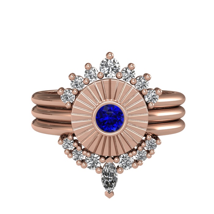 Swarovski ve lab safir 14 ayar rose altın yüzük