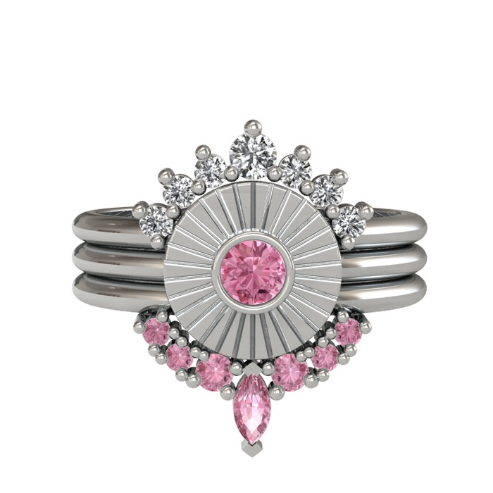 Swarovski ve pembe kuvars 8 ayar beyaz altın yüzük