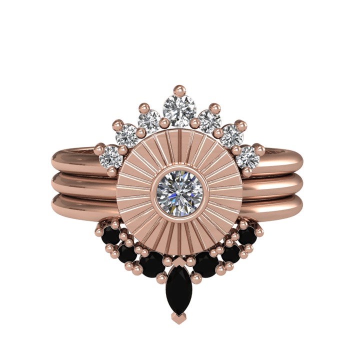 Swarovski, pırlanta ve siyah zirkon 14 ayar rose altın yüzük (0.16 karat)