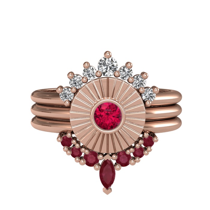 Swarovski, rodolit garnet ve kök yakut 18 ayar rose altın yüzük