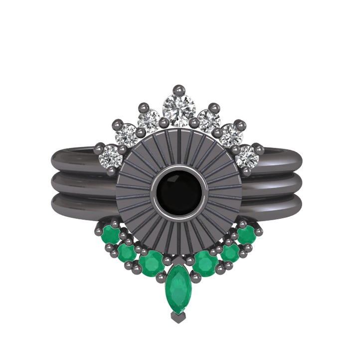 Swarovski, siyah zirkon ve kök zümrüt 925 ayar siyah rodyum kaplama gümüş yüzük
