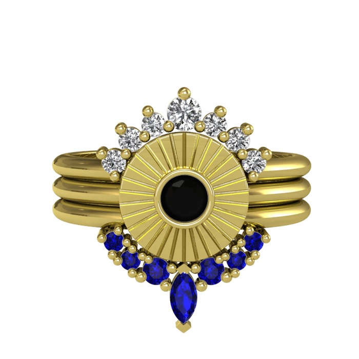 Swarovski, siyah zirkon ve lab safir 18 ayar altın yüzük