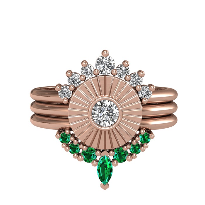 Swarovski ve yeşil kuvars 14 ayar rose altın yüzük