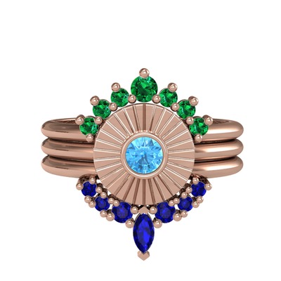 Yeşil kuvars, akuamarin ve lab safir 925 ayar rose altın kaplama gümüş yüzük