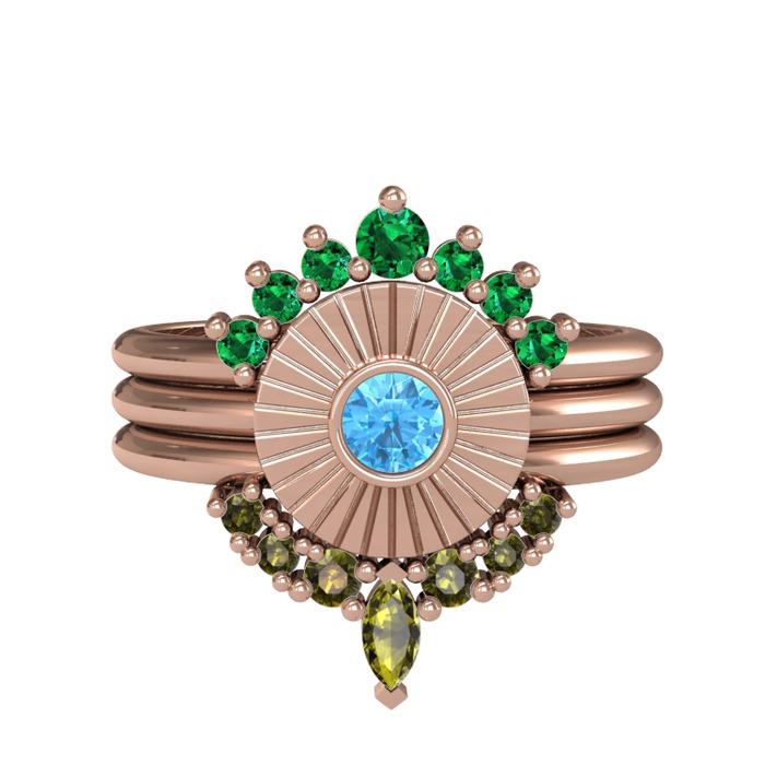 Yeşil kuvars, akuamarin ve peridot 14 ayar rose altın yüzük