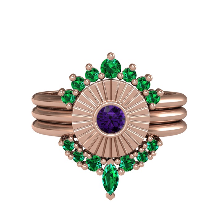 Yeşil kuvars ve ametist 14 ayar rose altın yüzük