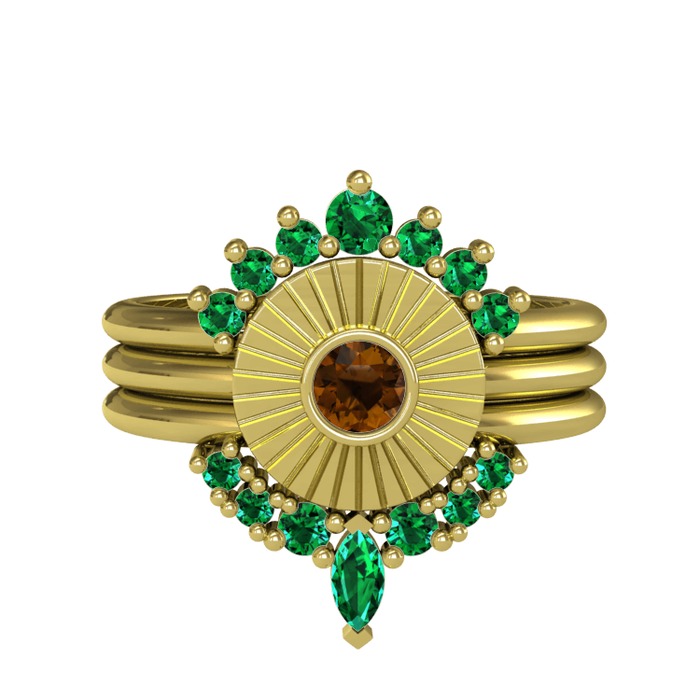 Yeşil kuvars ve dumanlı kuvars 8 ayar altın yüzük