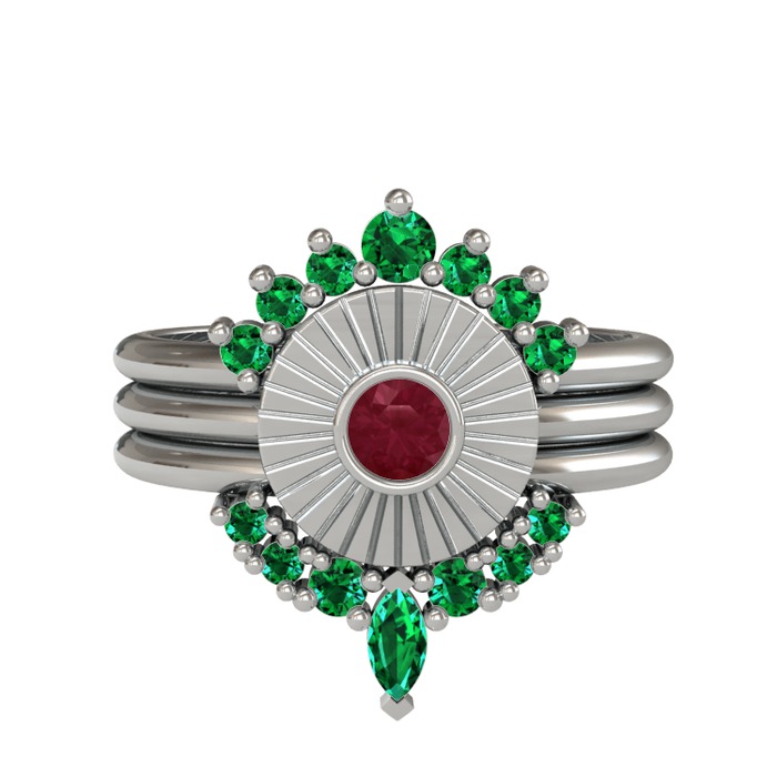 Yeşil kuvars ve kök yakut 8 ayar beyaz altın yüzük