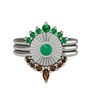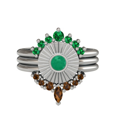 Yeşil kuvars, kök zümrüt ve dumanlı kuvars 14 ayar beyaz altın yüzük