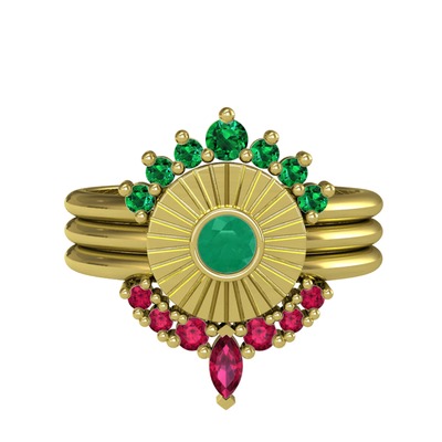 Yeşil kuvars, kök zümrüt ve rodolit garnet 925 ayar altın kaplama gümüş yüzük