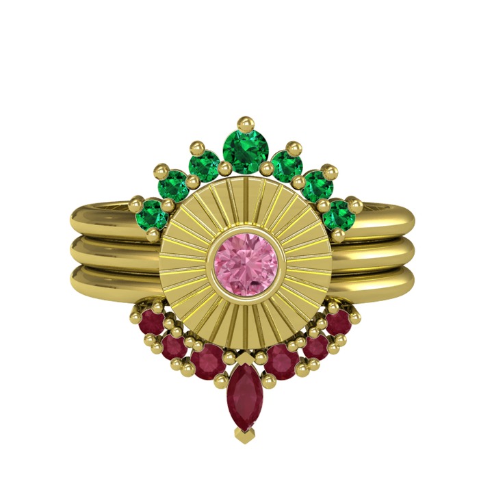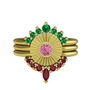 Yeşil kuvars, pembe kuvars ve kök yakut 925 ayar altın kaplama gümüş yüzük