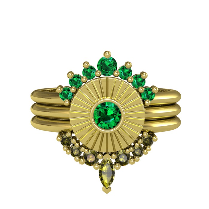 Yeşil kuvars ve peridot 14 ayar altın yüzük