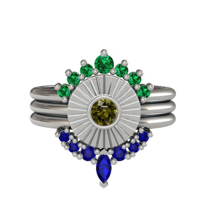 Yeşil kuvars, peridot ve lab safir 8 ayar beyaz altın yüzük