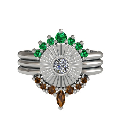 Yeşil kuvars, pırlanta ve dumanlı kuvars 925 ayar gümüş yüzük (0.16 karat)