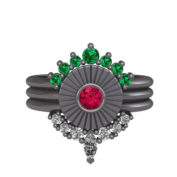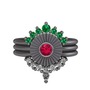 Yeşil kuvars, rodolit garnet ve beyaz zirkon 925 ayar siyah rodyum kaplama gümüş yüzük
