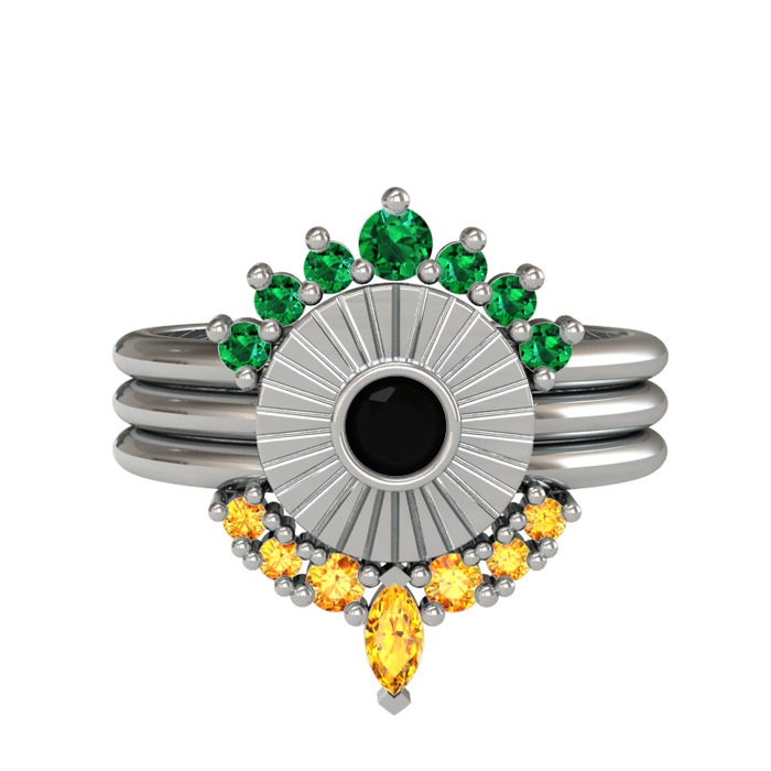 Yeşil kuvars, siyah zirkon ve sitrin 18 ayar beyaz altın yüzük