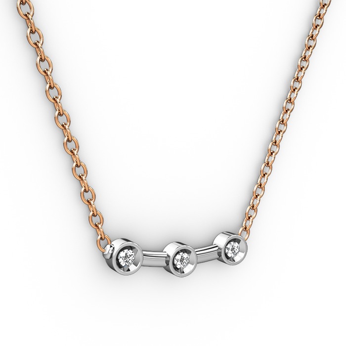 Elmas 8 ayar beyaz altın kolye (0.033 karat, 40 cm rose altın rolo zincir)