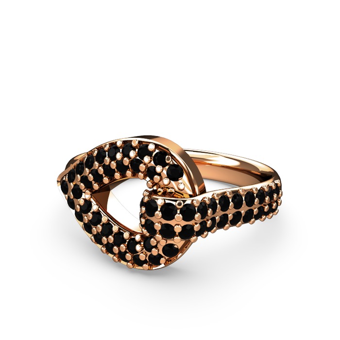 Siyah zirkon 925 ayar rose altın kaplama gümüş yüzük