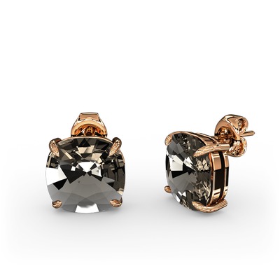 Dumanlı kuvars 925 ayar rose altın kaplama gümüş küpe