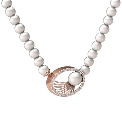 Inci ve beyaz zirkon 8 ayar rose altın kolye
