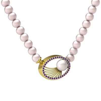 Inci, pembe inci ve ametist 18 ayar altın kolye
