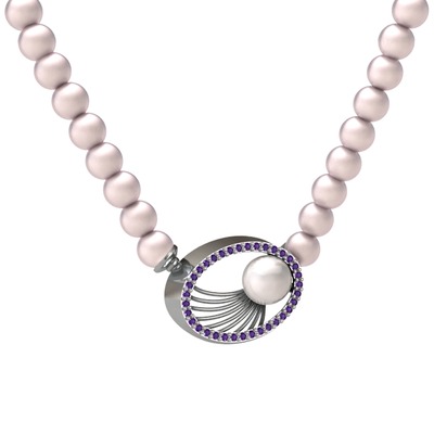 Inci, pembe inci ve ametist 925 ayar gümüş kolye