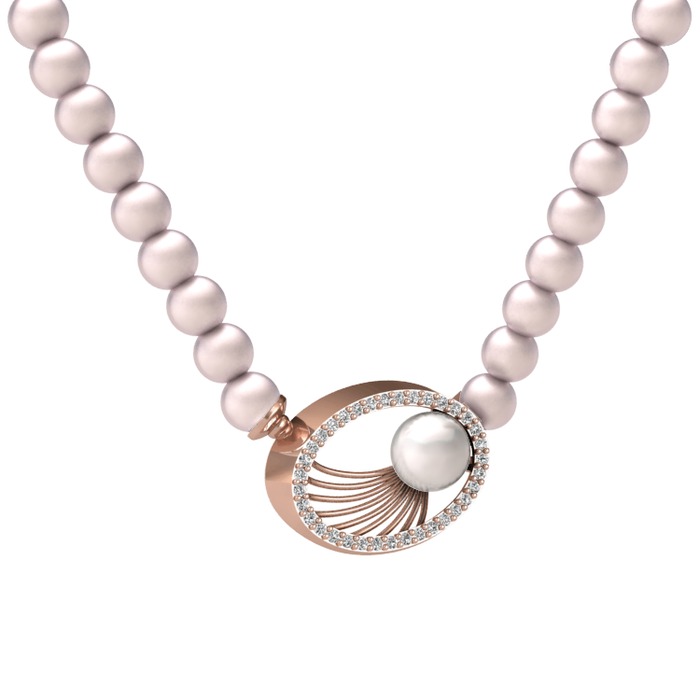 Inci, pembe inci ve beyaz zirkon 18 ayar rose altın kolye