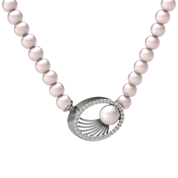 Inci, pembe inci ve beyaz zirkon 8 ayar beyaz altın kolye