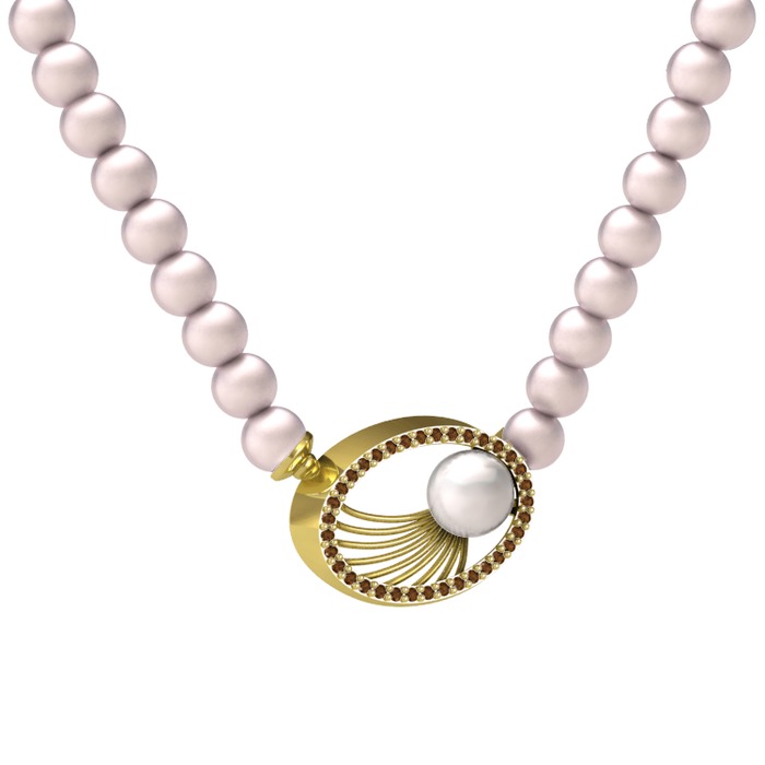 Inci, pembe inci ve dumanlı kuvars 14 ayar altın kolye