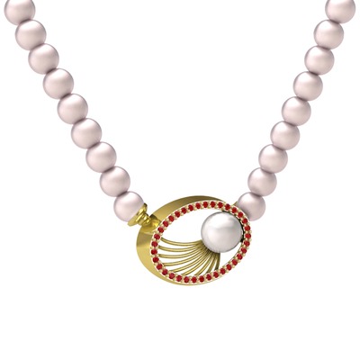 Inci, pembe inci ve garnet 14 ayar altın kolye