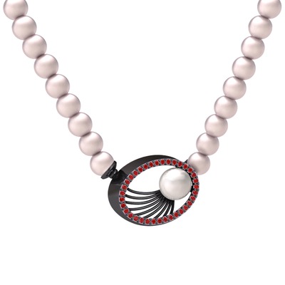 Inci, pembe inci ve garnet 925 ayar siyah rodyum kaplama gümüş kolye