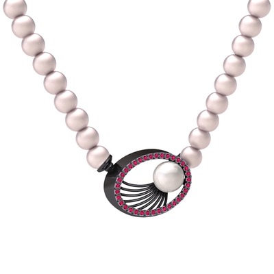 Inci, pembe inci ve rodolit garnet 925 ayar siyah rodyum kaplama gümüş kolye