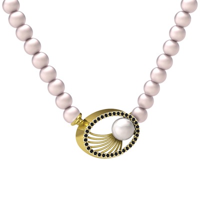 Inci, pembe inci ve siyah zirkon 18 ayar altın kolye