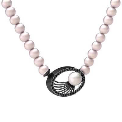 Inci, pembe inci ve siyah zirkon 925 ayar siyah rodyum kaplama gümüş kolye