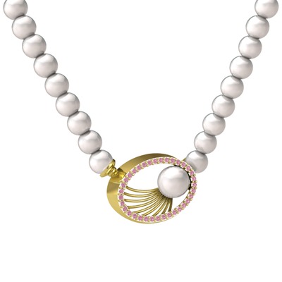 Inci ve pembe kuvars 18 ayar altın kolye