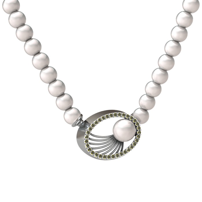 Inci ve peridot 8 ayar beyaz altın kolye