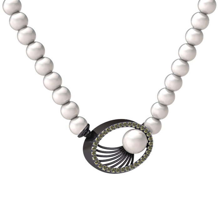 Inci ve peridot 925 ayar siyah rodyum kaplama gümüş kolye