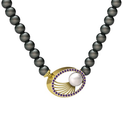 Inci, siyah inci ve ametist 14 ayar altın kolye