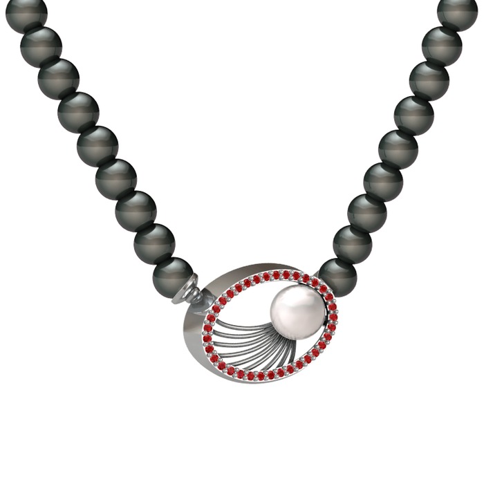 Inci, siyah inci ve garnet 14 ayar beyaz altın kolye