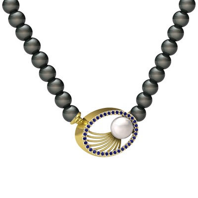 Inci, siyah inci ve lab safir 14 ayar altın kolye