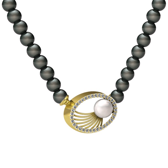 Inci, siyah inci ve pırlanta 925 ayar altın kaplama gümüş kolye (0.396 karat)
