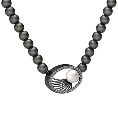 Inci, siyah inci ve pırlanta 925 ayar siyah rodyum kaplama gümüş kolye (0.396 karat)