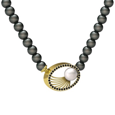 Inci, siyah inci ve siyah zirkon 14 ayar altın kolye