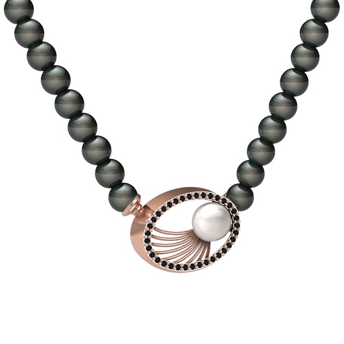 Inci, siyah inci ve siyah zirkon 925 ayar rose altın kaplama gümüş kolye