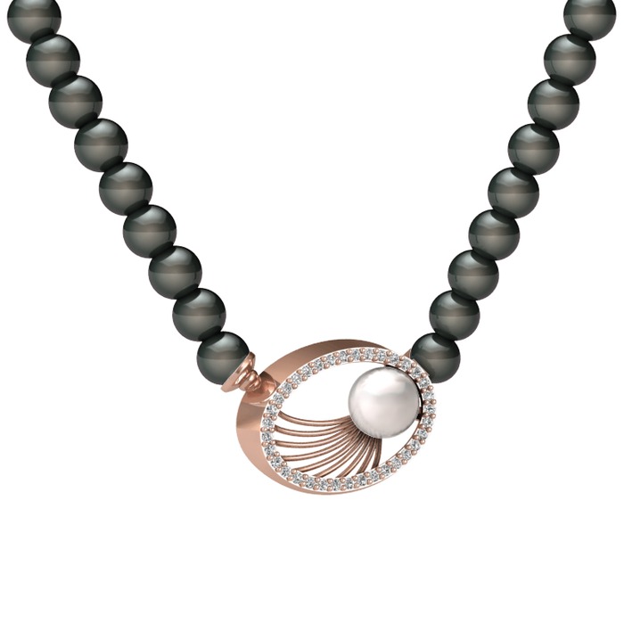 Inci, siyah inci ve swarovski 925 ayar rose altın kaplama gümüş kolye