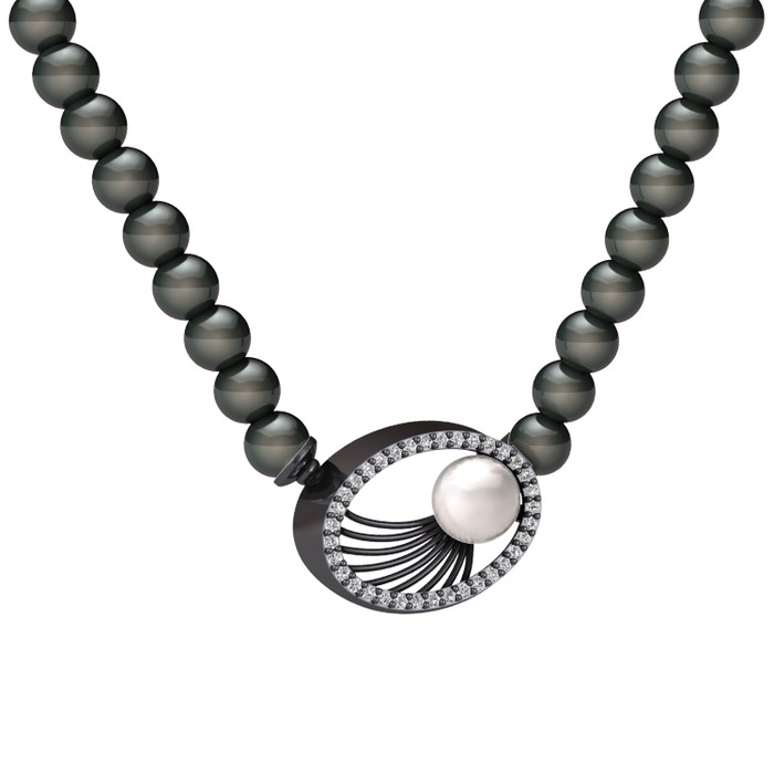 Inci, siyah inci ve swarovski 925 ayar siyah rodyum kaplama gümüş kolye