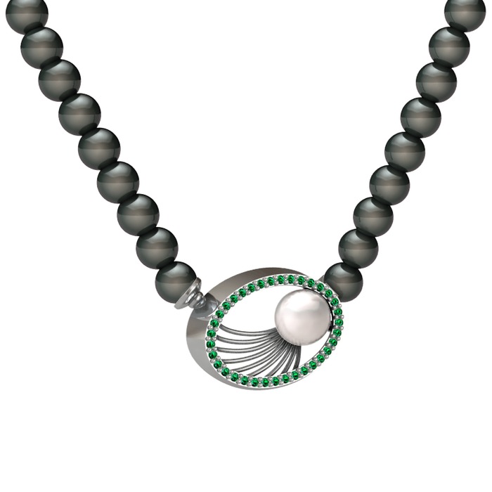Inci, siyah inci ve yeşil kuvars 14 ayar beyaz altın kolye