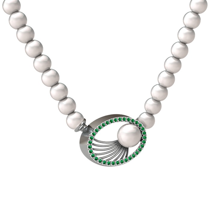 Inci ve yeşil kuvars 14 ayar beyaz altın kolye