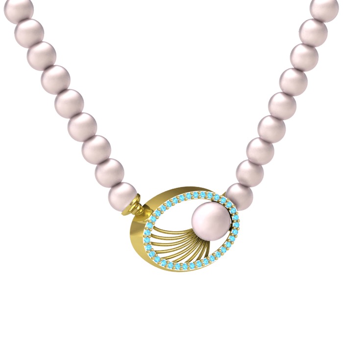 Pembe inci ve akuamarin 18 ayar altın kolye