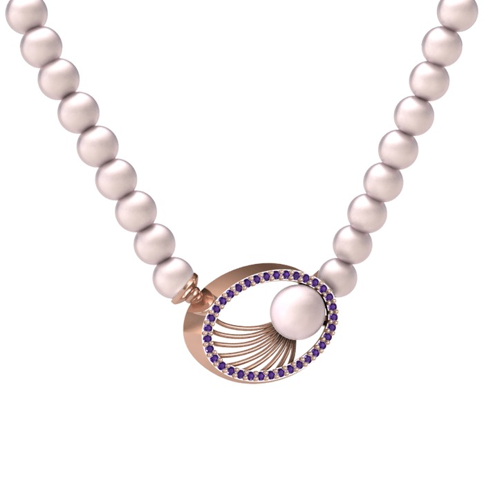 Pembe inci ve ametist 18 ayar rose altın kolye